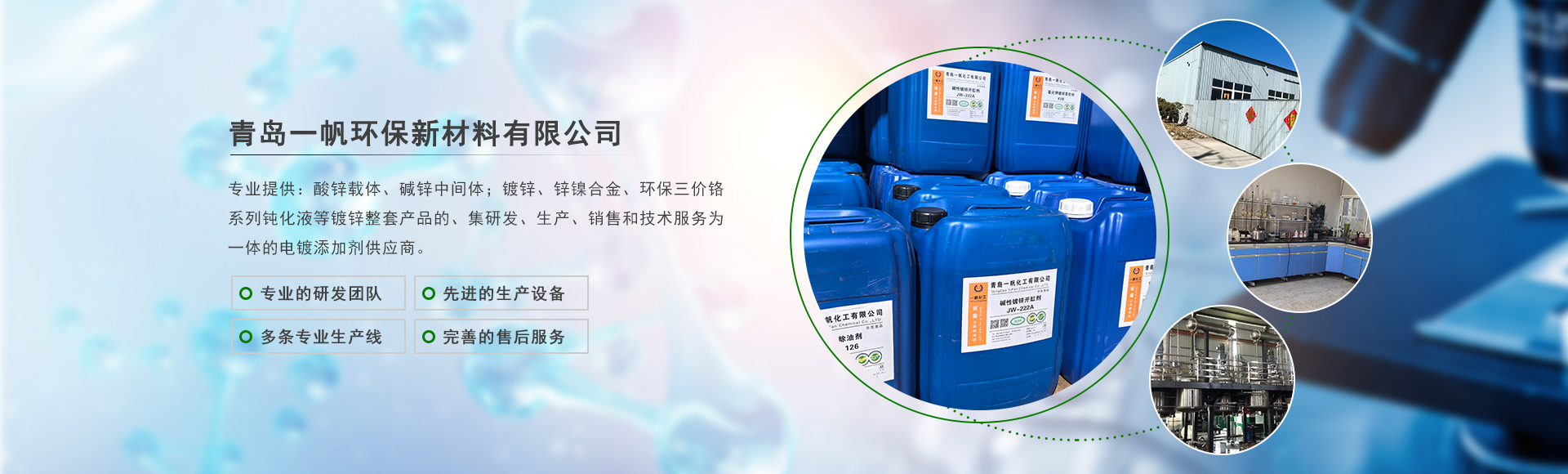 青島一帆環保新材料有限公司主營酸鋅載體、堿鋅中間體等一站式電鍍添加劑服務商!
